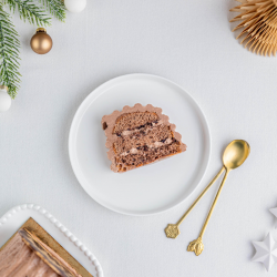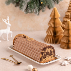 Au cœur de la Forêt Enchantée, cette bûche chocolat révèle toute sa gourmandise. Une génoise chocolat moelleuse, un coulis et un croustillant chocolat noir, sublimés par une crème chocolat onctueuse. Une création simple et terriblement savoureuse, où intensité du cacao et douceur se rencontrent pour un Noël raffiné et magique.